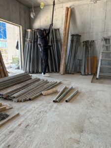 今日は1階から2階、そして2階から3階へ、材料をすべて手作業で運び上げる作業でした♪真ん中の2階は、下からの荷物を受け取り、さらに上へ渡すという、一番きついポジション😰そんな中…なんと