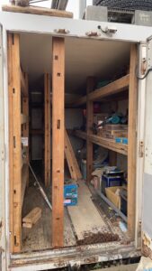 こちらの写真は、置き場にある物置の様子です🙋♀️💙工具や材料をスッキリ収納するために、私たち双羽工務店の大工が自ら棚を作りま